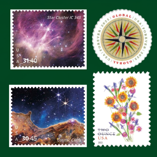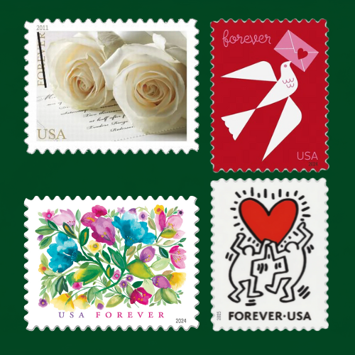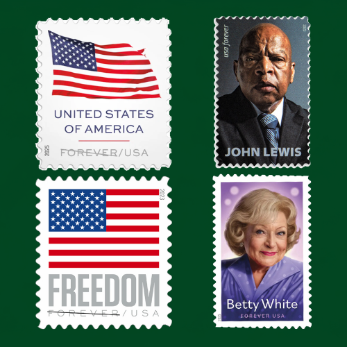 All stamps are valid USPS Forever® postage — usable anytime, no expiration.