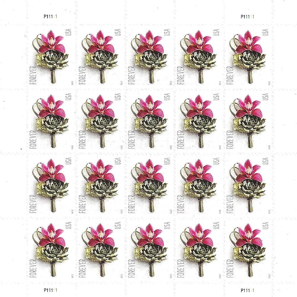 The 2020 Contemporary Boutonniere USPS Forever® Stamps offer a sophisticated botanical design, ideal for formal business mailing and wedding RSVPs. As official United States Postal Service stamps, these add a layer of prestige to your mailing envelopes that far outperforms a standard professional email. Every sheet is provided in factory-fresh MNH condition.