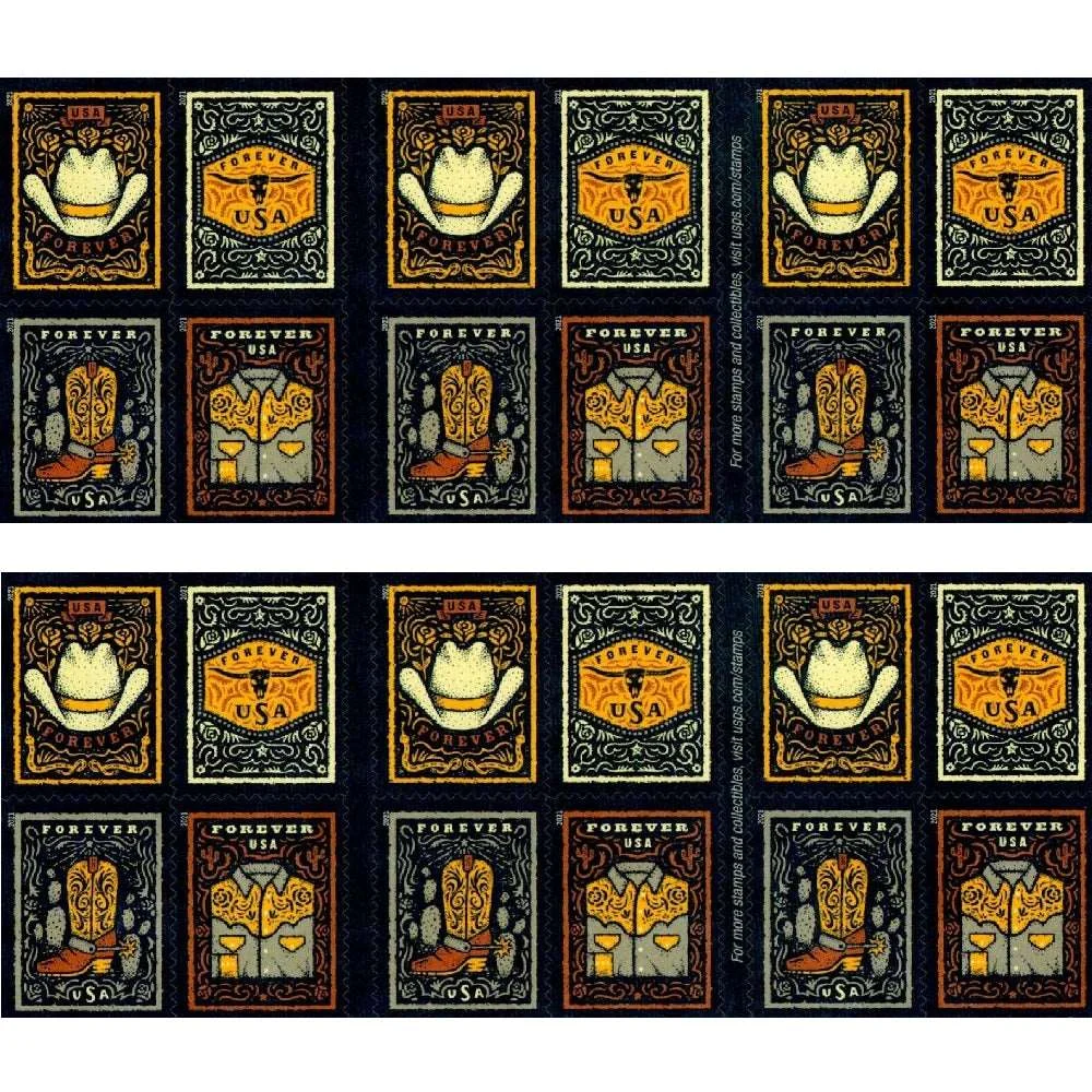 The 2021 Western Wear USPS Forever® Stamps celebrate the rugged spirit of the American West. These official usps stamps are a distinguished choice for boutique business mailing, Western-themed events, and personal stationery. The bold imagery provides a unique professional look for your mailing envelopes and corporate outreach.